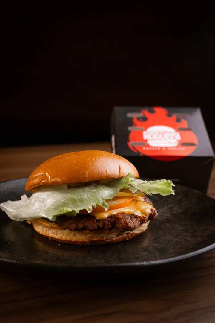 Pão de brioche selado na manteiga, burger smash de 80g (in natura), 2 fatias de cheddar, tomate, alface crocante e maionese da casa.